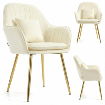 Krzesło welurowe z poduszką | Bardzo jasny beż ze złotymi nogami