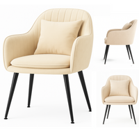 Krzesło welurowe z poduszką | Beżowe ze złotymi nogami