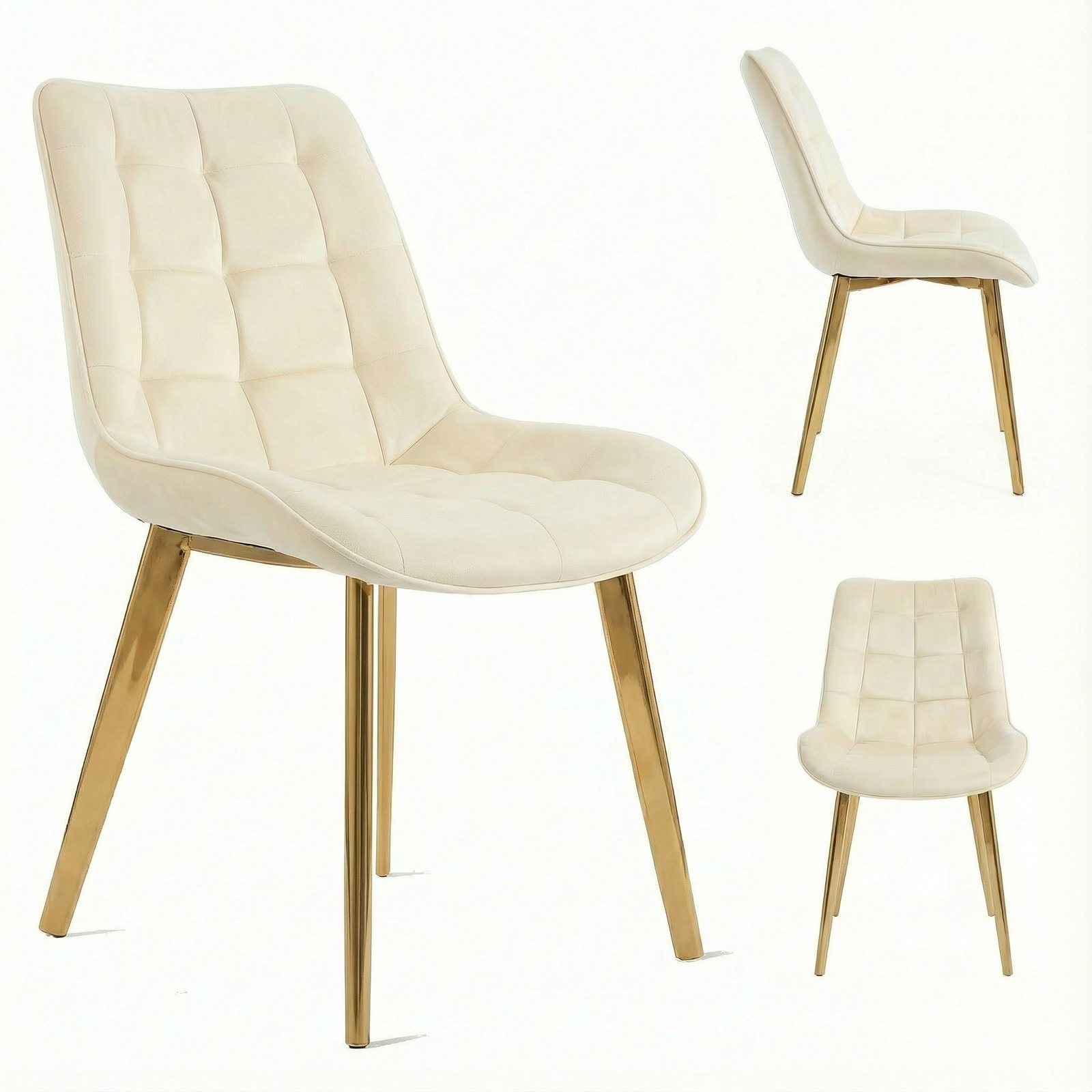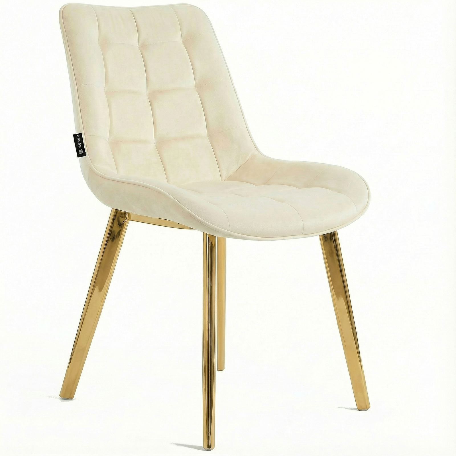 Krzesło welurowe | Jasnobeżowe złote nogi