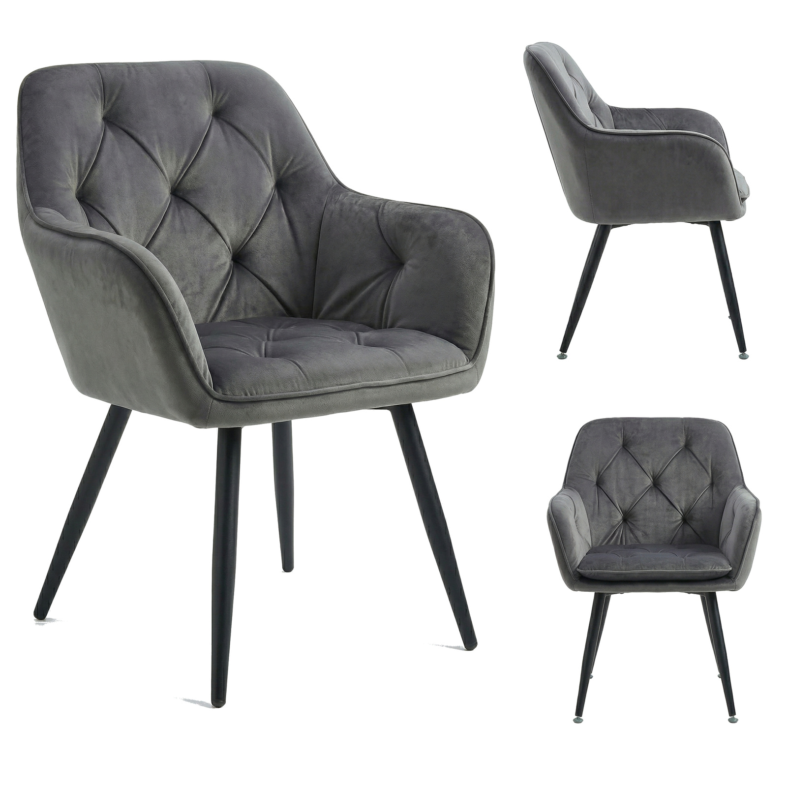 Krzesło welurowe pikowane | Ciemnoszare