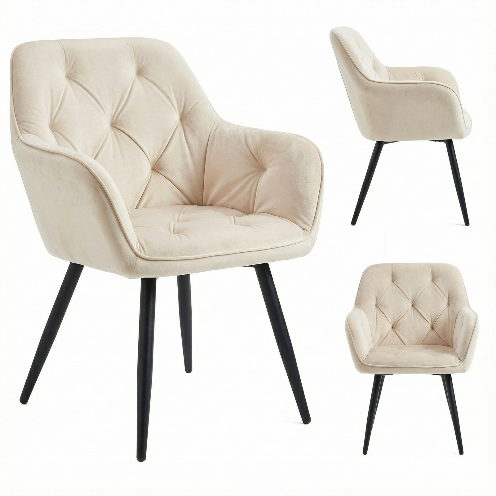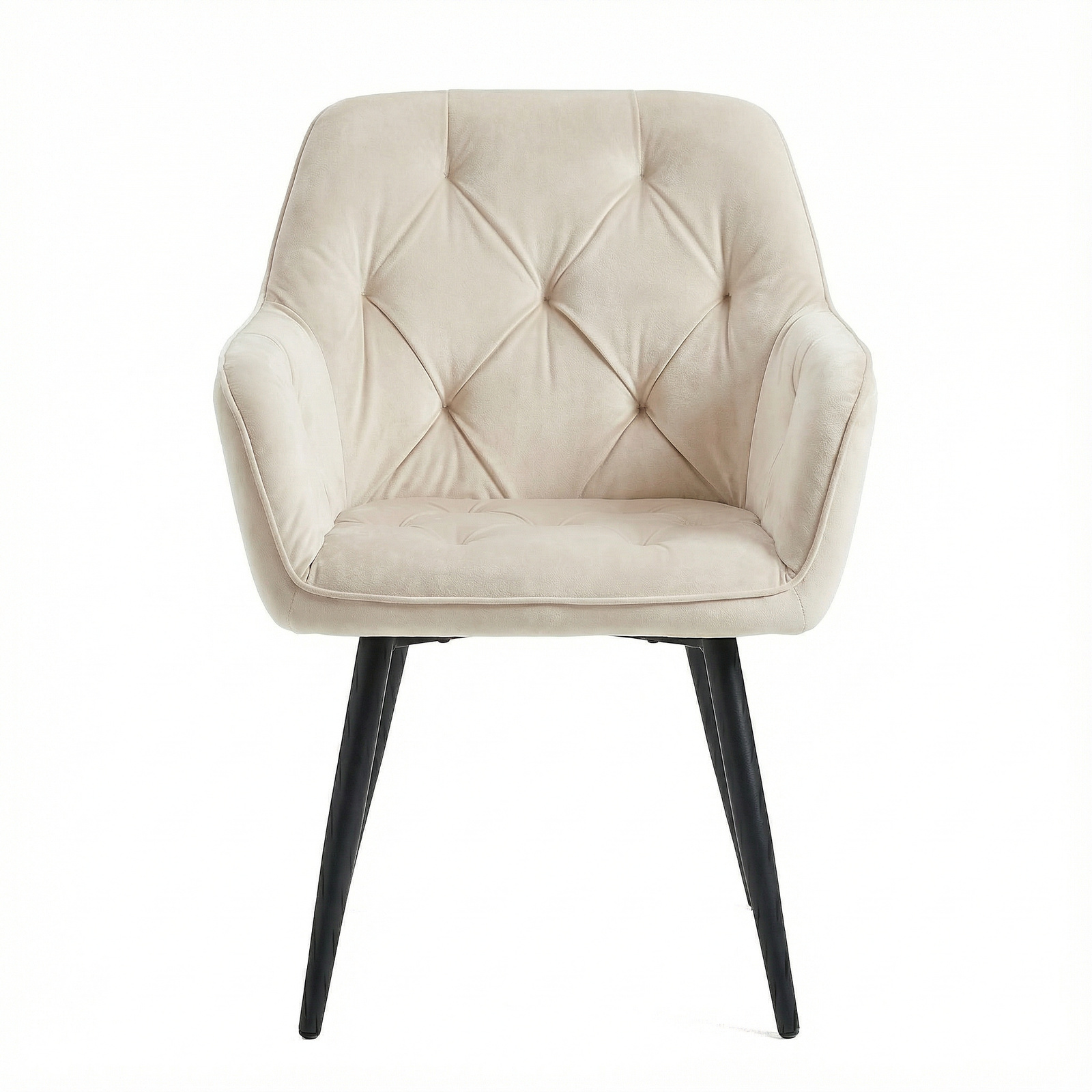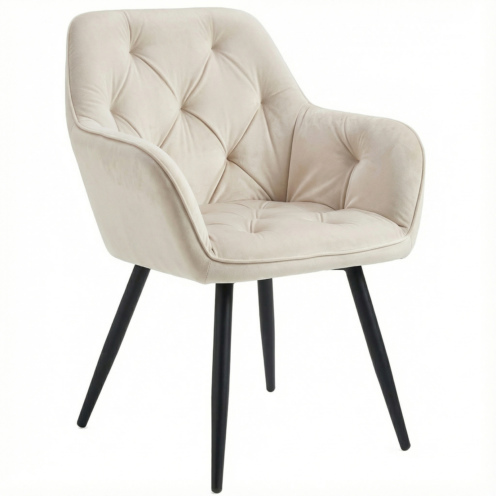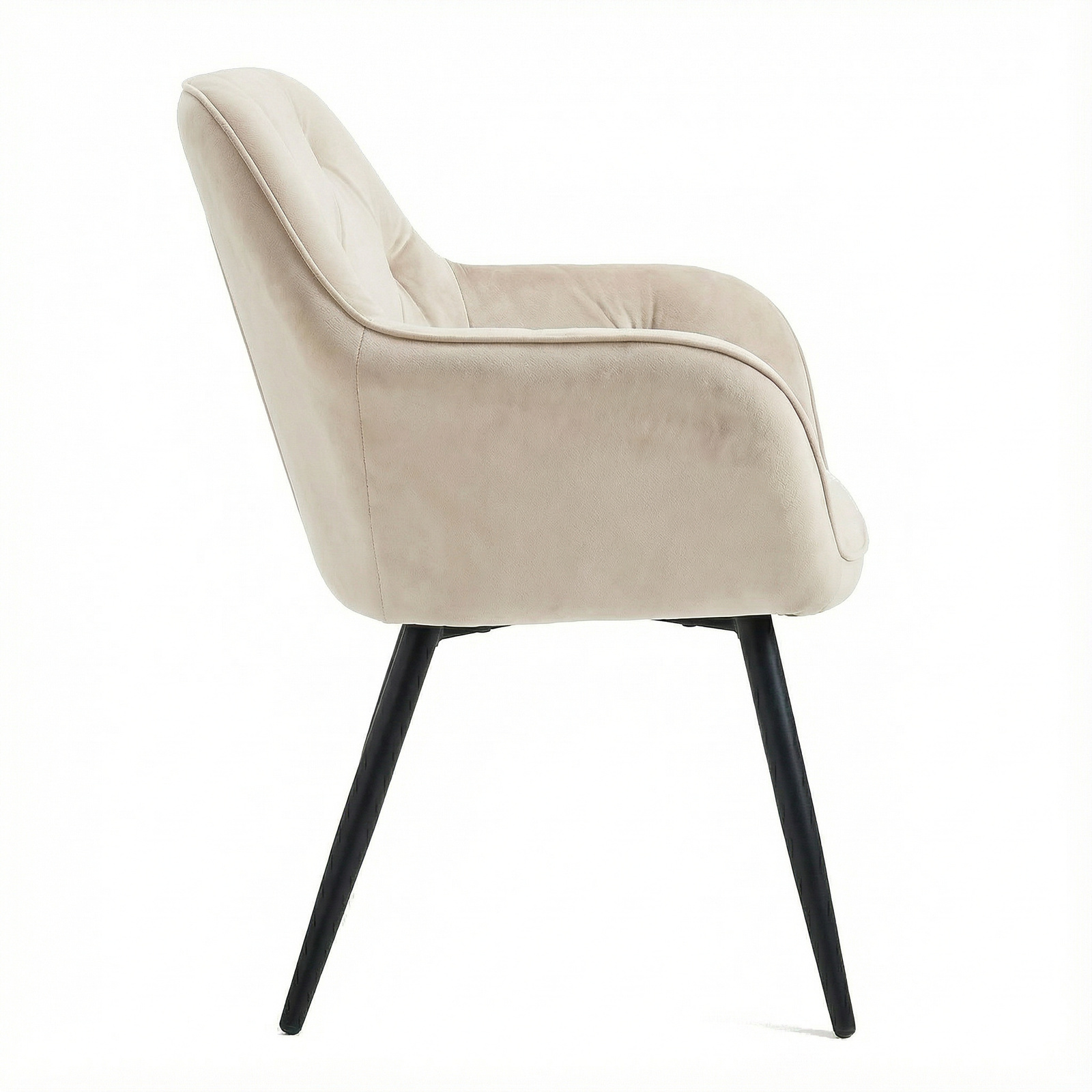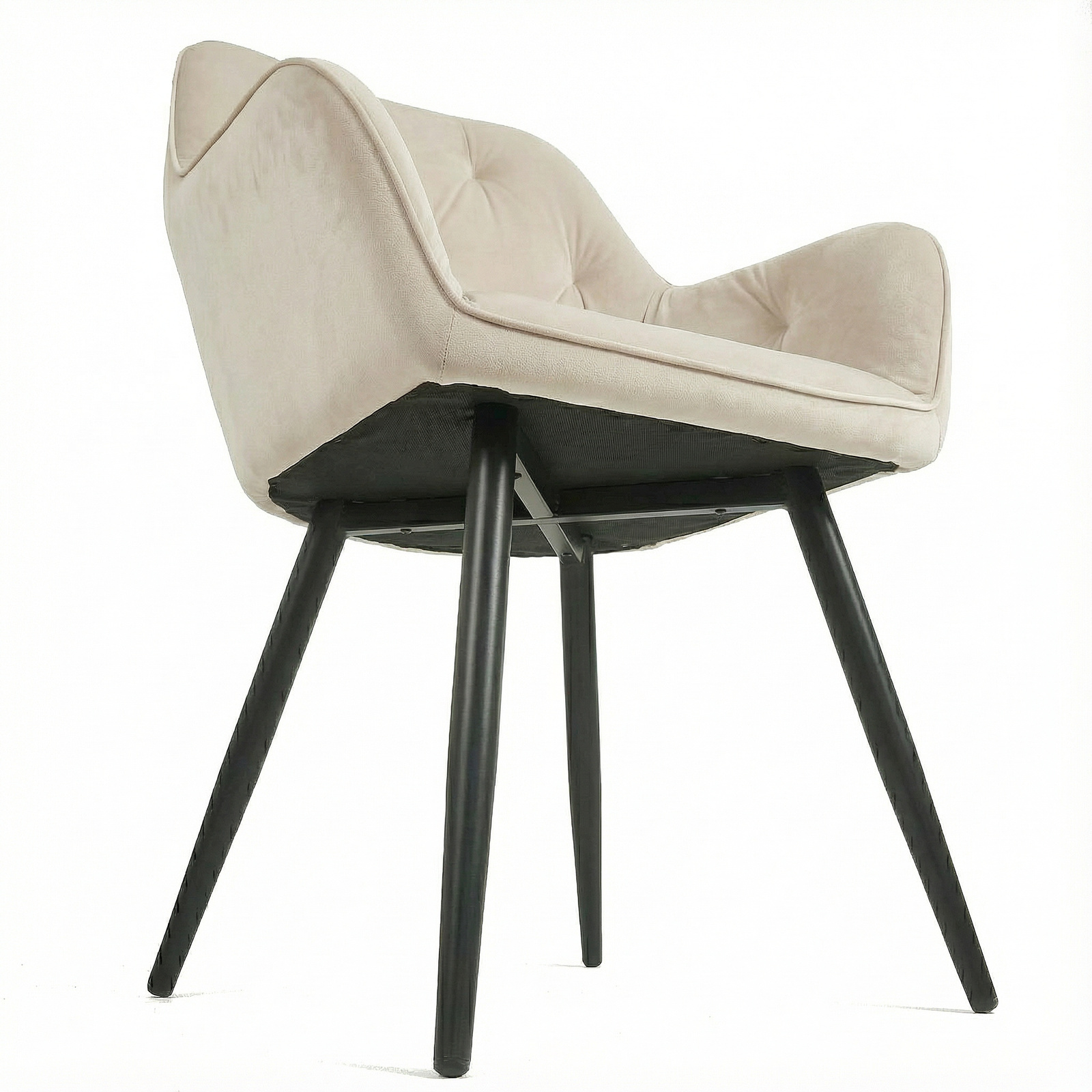 Krzesło welurowe pikowane | Jasnobeżowe czarne nogi