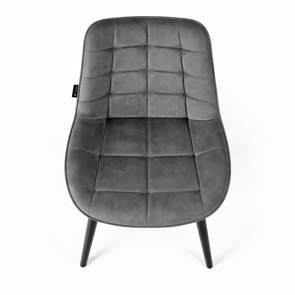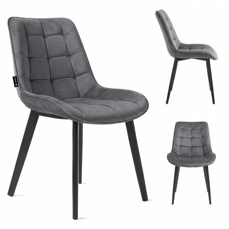 Miękka, welurowa tapicerka nadaje mu luksusowego charakteru, a charakterystyczne wzmacniane nogi w typu boomerang sprawiają, że krzesło wyróżnia się na tle klasycznych modeli oraz zapewnia długoletnią wytrzymałość.