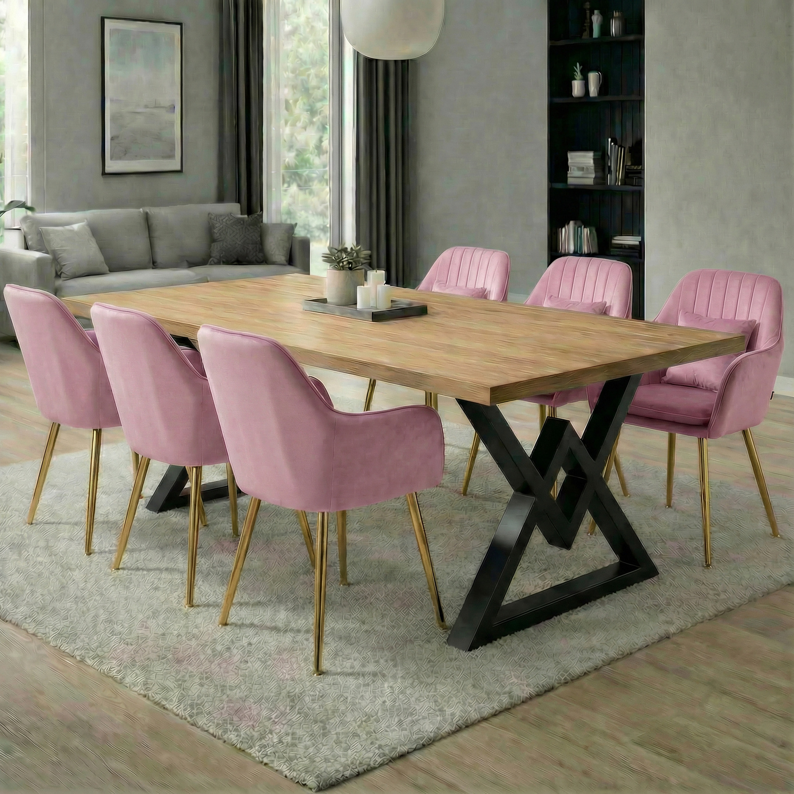 Krzesło welurowe z poduszką | Pudrowy róż