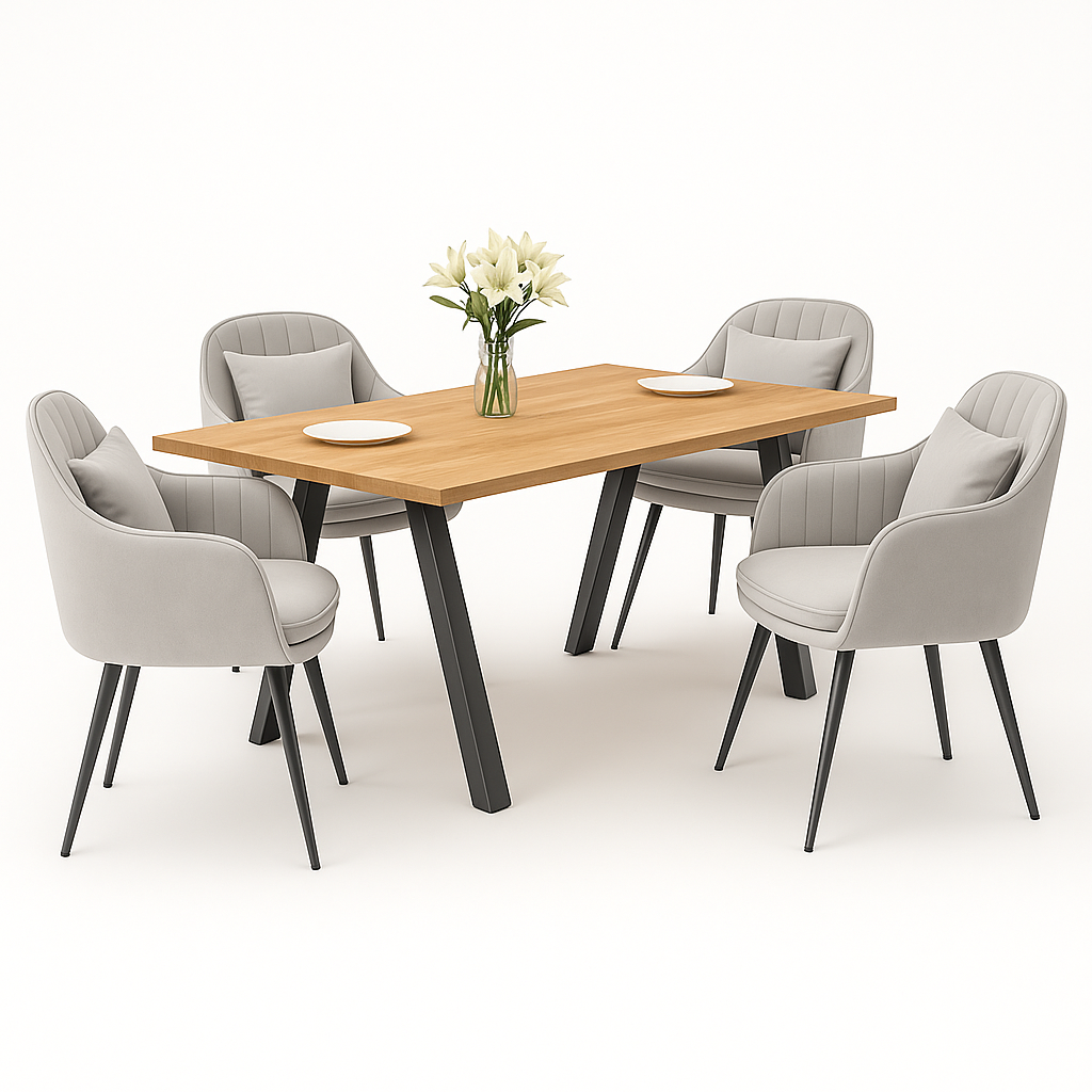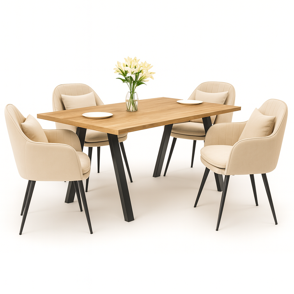 • Wybierz kolor blatu, rodzaj nóg i kolorystykę krzeseł zgodnie z dostępnymi wariantami.