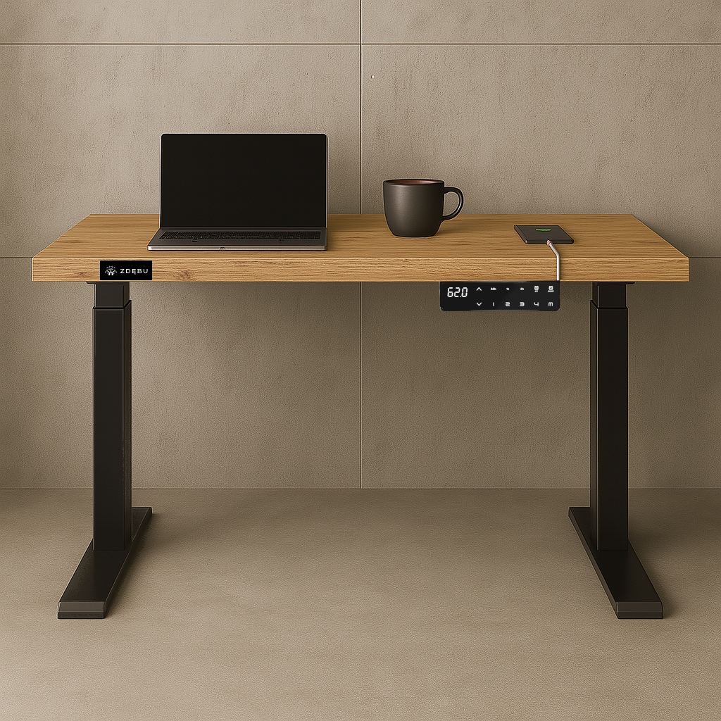 Biurko elektryczne dębowe 140x80x3 | 200 kg | 100% Dąb naturalny