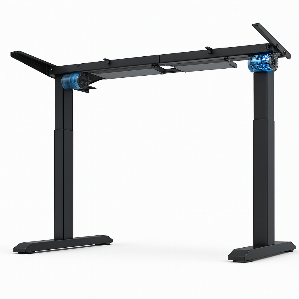 - Zakres regulacji stelaża 62 cm - 126 cm (+grubość blatu) - możliwość pracy siedzącej oraz stojącej dla osób o różnym wzroście. Regulacja odbywa się za pomocą sterownika. Stelaż zapewnia również możliwość ograniczenia wysokości (minimalnego oraz maksymalnego np. do 120 cm)